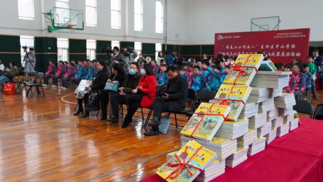 活动开始首先进行赠书仪式。南昌市文化馆向南昌市豫章小学教育集团赠送了《南昌非物质文化遗产系列读本·滕王阁传说——我是滕王我是阁》丛书120套,这些书籍将分发至该校区6个年级和校内图书馆。以漫画读本的形式,普及非遗知识,增强保护意识,让孩子们更加了解本地优秀传统文化,感受非遗的独特魅力。