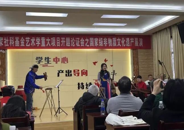 3月17日下午南昌市文化馆群星艺术团应江西师范大学邀请,组织南昌清音参加江西师范大学音乐学院2022年国家社科基金艺术学重大项目“中国乐学理论体系研究”开题论证会之国家级非物质文化遗产项目展演。参加论证会的专家有:首席专家中国音乐学院教授、博士研究生导师傅利民,中国艺术研究院音乐研究所原研究员博土生导师秦序,文旅部中国艺术科技研究所全国艺术科学规划项目管理中心主任邱邑洪、江西省文旅厅科技教育处处长黄玲,以及来自中央音乐学院、四川、武汉、哈尔滨等音乐学院的专家。