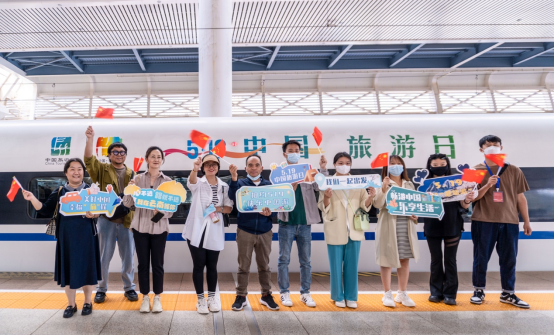 图为搭乘“5·19中国旅游日”主题高铁列车首发班次的游客