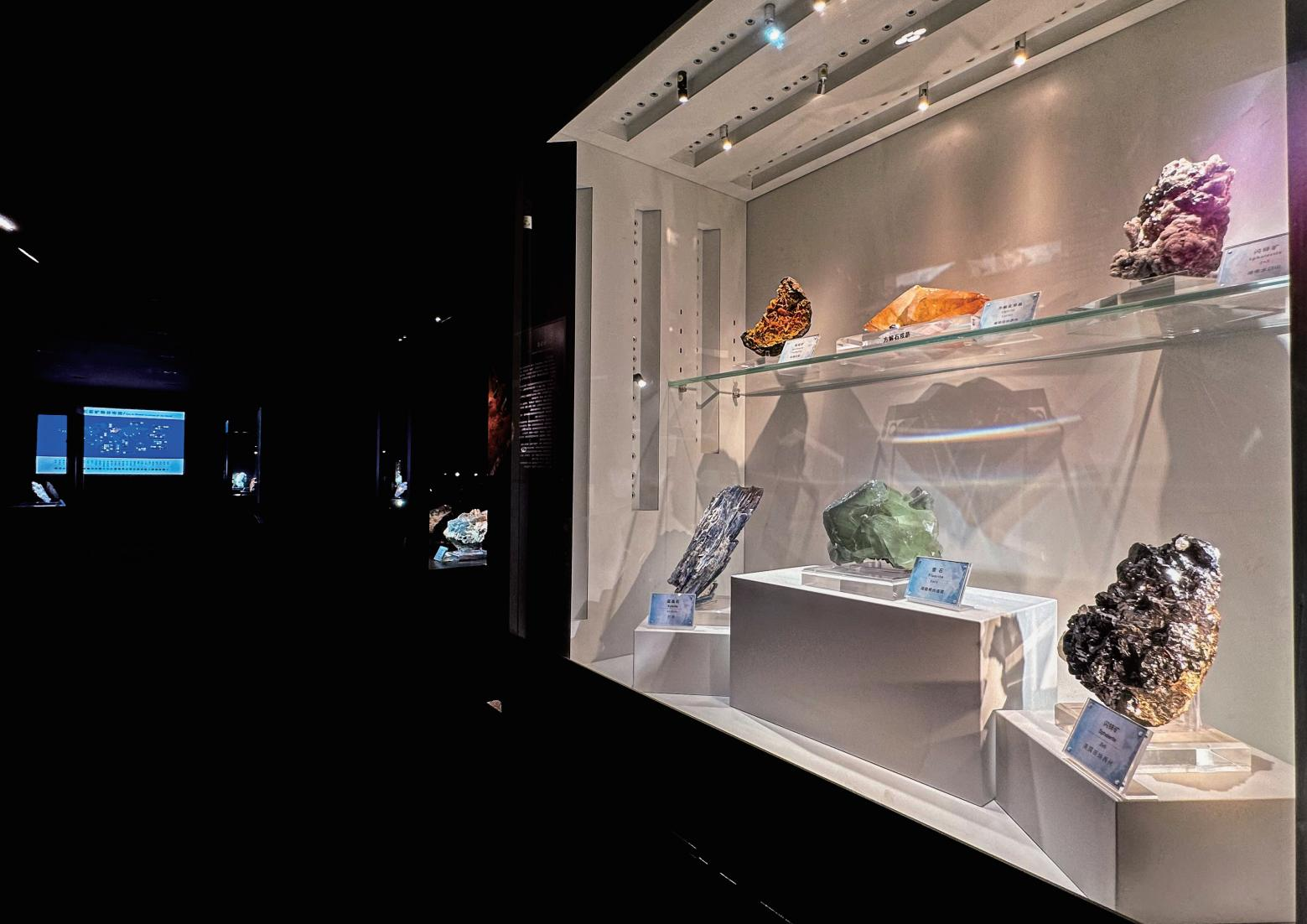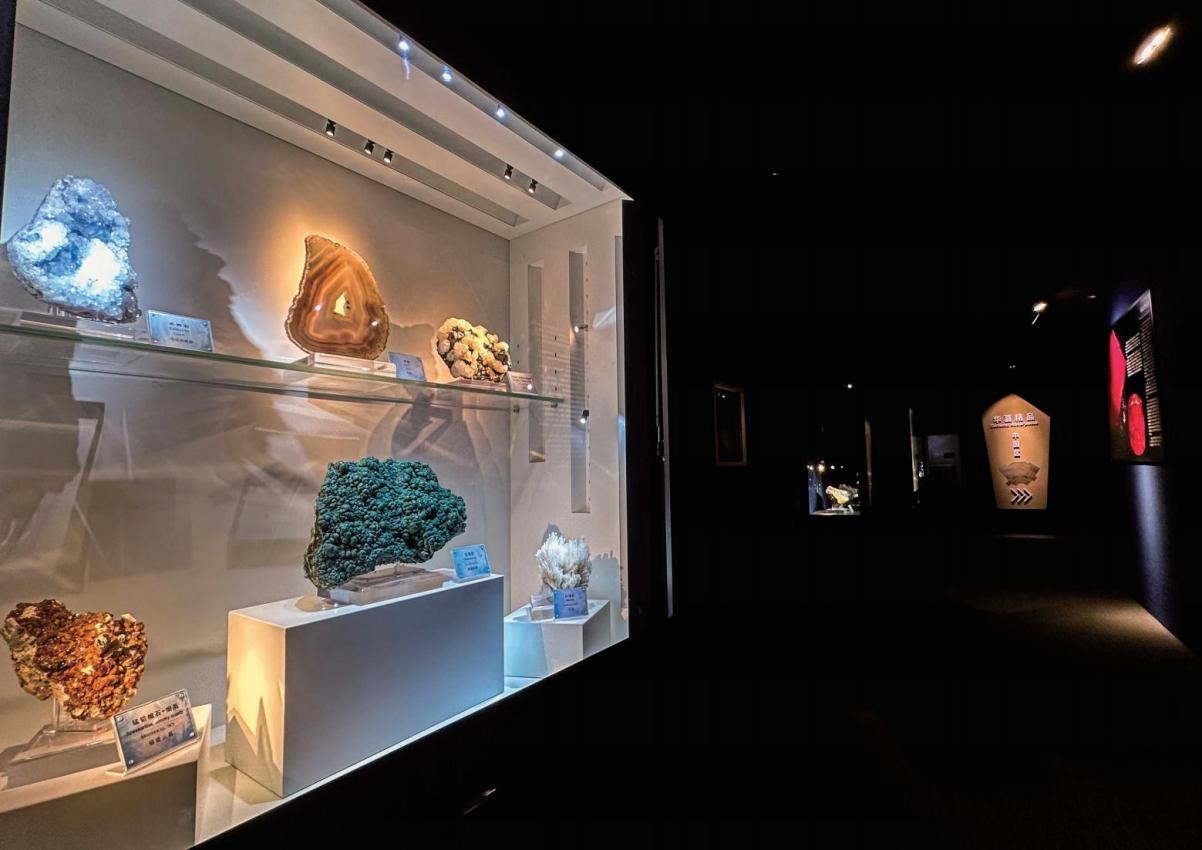由于展览面积有限,本展厅无法全面展示中国特色矿物宝石精品,故选出了一批极具代表性的国宝级精品展览。其中有从意大利米兰自然博物馆高价购回的红硅钙锰矿与湖北石,还有二十余块被上海自然博物馆等单位选用,代表中国政府参加了“一带一路”国际巡回展的中国顶级特色矿物精品。此外还有一些收藏多年,但首次亮相的“中国宝贝”。