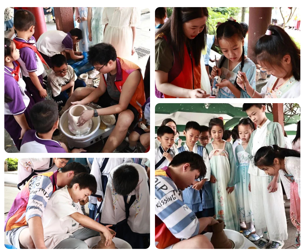 5月31日上午,南昌市育新学校的孩子们身着漂亮的汉服,在南昌市文化馆“群星大讲堂”志愿者的带领下,体验陶艺、手绘陶泥杯,DIY属于自己的节日特别礼物。
