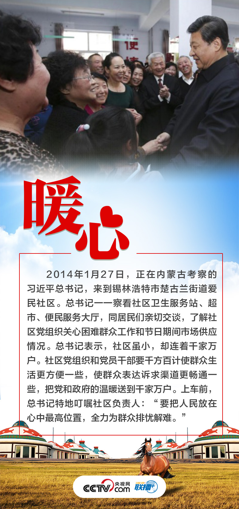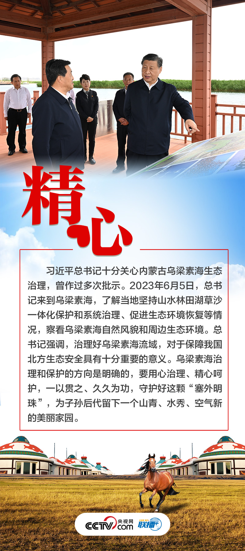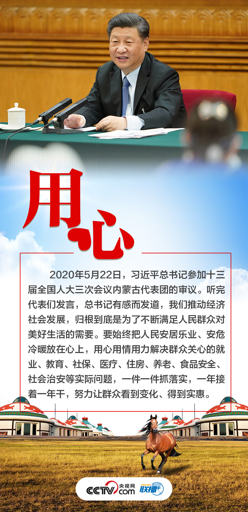 6月5日至6日,习近平总书记深入内蒙古巴彦淖尔市的自然保护区、现代农业示范园区、林场、水利部门等调研。党的十八大以来,三次到内蒙古考察、五次参加内蒙古代表团审议,传递着习近平总书记对这片热土的牵挂与惦念。央视网《联播+》梳理总书记与内蒙古的故事,与您一起体会这些故事背后的“心”意。