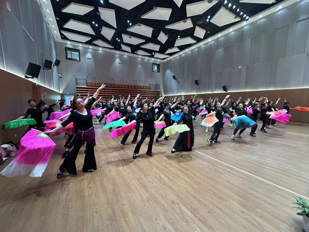 此次培训为期半天,学员们跟随者舞蹈志愿者李丽丽、黄玲老师进行了系统的《花开中国》广场舞培训,课堂上老师针对每个舞蹈动作一一示范,耐心讲解,从形体、扇法、眼神,表情等细细教学。学员们跟着老师认真学习,刻苦训练。短短三个小时的培训,学员们就在动作规范和表现力上得到了很大程度的提高。本次广场舞培训通过现场教学的方式,让专业老师走进群众,打破以往群众对舞蹈培训“门槛高”的刻板印象,形成老师带骨干、骨干带群众的联动效应,取得了良好的培训效果。广场舞《花开中国》培训活动让普通群众在练习中感受到舞蹈的魅力,同时进一步营造全民学习舞蹈的氛围,提升了基层群众的获得感和幸福感。