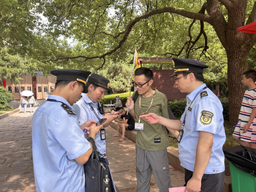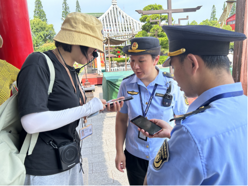 近日,执法人员对正在执业的导游人员通过登录“全国旅游监管”APP的“导游查询”模块,扫描导游身份标识上的二维码,验证导游身份和导游执业APP开启情况;通过查看电子行程单验证是否存在“未经旅行社委派私自带团”的情况。对未按规定开启执业软件、未全程佩戴导游身份标识的导游人员严肃批评教育并现场纠治。