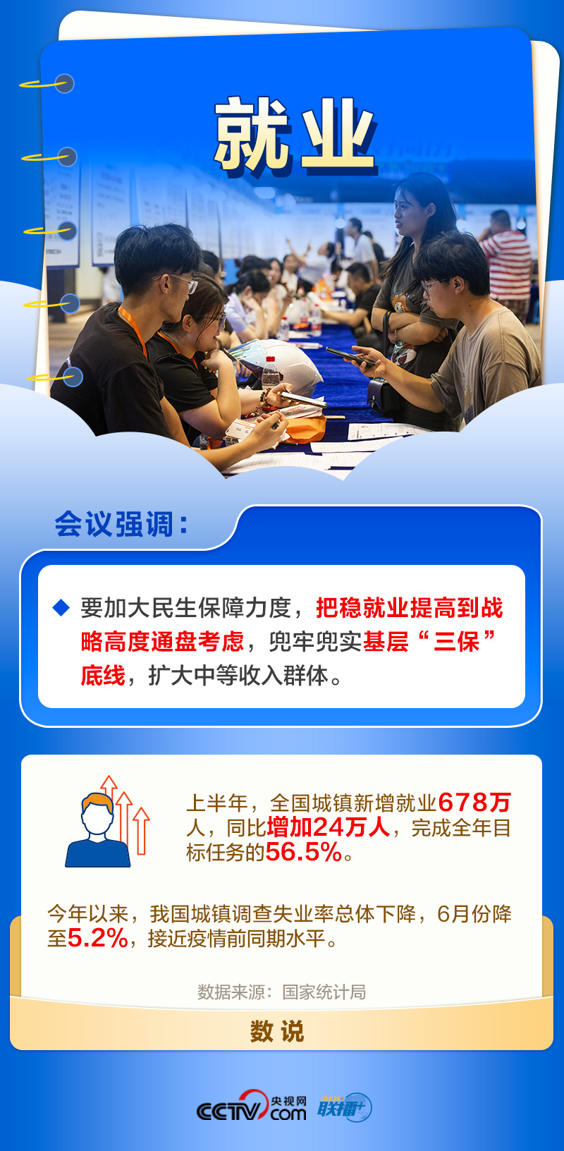 就业是最大的民生,也是最基本的民生。党中央一直高度关注就业形势。今年以来,各地区各部门多措并举稳存量、扩增量、提质量、兜底线,落实落细就业优先政策,完善公共就业服务。