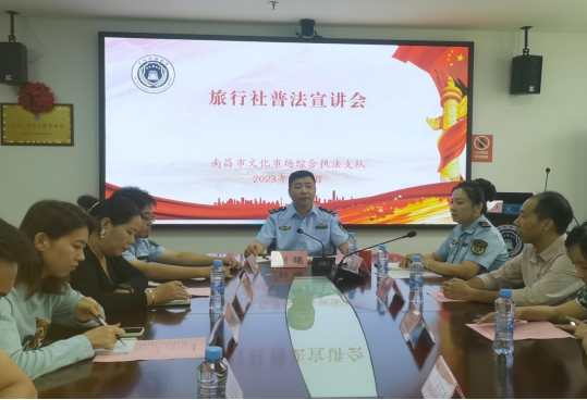 为进一步规范旅行社经营行为,提升旅游服务质量。9月1日上午,南昌市文化市场综合执法支队对我市60余家旅游经营单位进行了普法宣讲。市文化市场综合执法支队支队长刘曦同志参加活动并讲话;支队分管旅游执法领导魏芳同志主持、中心城区七个派出大队负责人参加了会议。
