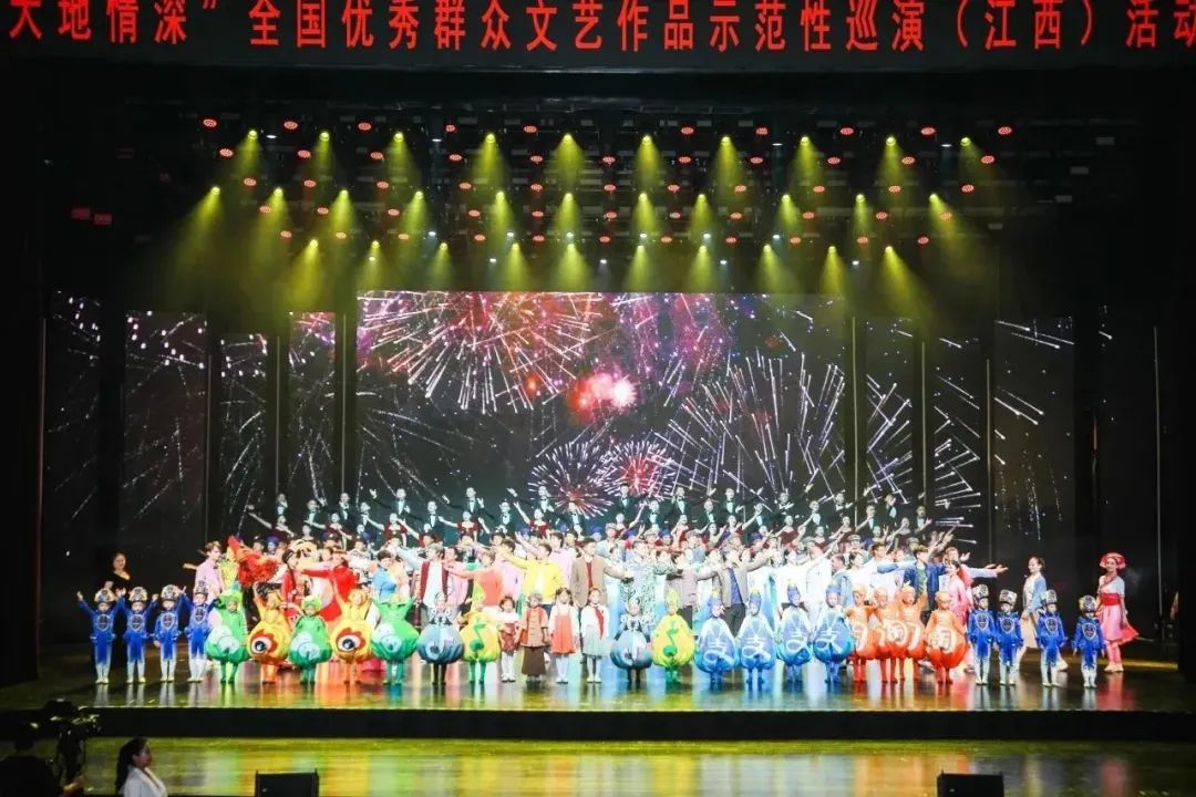 “大地情深”——全国优秀群众文艺作品示范性巡演(江西)活动是由文化和旅游部主办,文化和旅游部公共服务司及江西省、北京市、上海市、湖北省、山东省、广西壮族自治区等文化和旅游厅(局)承办,文化和旅游部全国公共文化发展中心、江西省文化馆、南昌市文化广电新闻出版旅游局、南昌县人民政府协办,南昌市文化馆、南昌县文化广电新闻出版旅游局具体执行,于9月27日晚在南昌县昌南文化中心盛大开启,并进行了首场演出, 参演人员达320余人,现场观众1000余人,江西日报、江西电视台、南昌日报、南昌电视台、南昌县融媒体中心等媒体报道了启动仪式盛况,同时国家公共文化云、今视频、央视频、抖音、微博等平台对演出进行了全程直播。