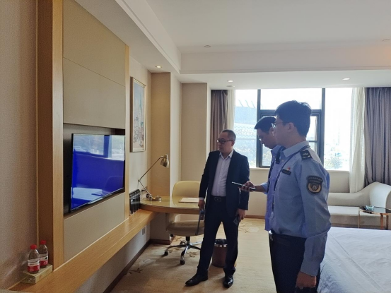 执法人员通过实地检查酒店电视机房设备,对其安全播出、应急预案、巡查检查等机房管理制度落实情况,电视机房消防设施使用维护情况,电视信号传输覆盖情况进行全面排查,向管理人员普及法规知识,现场讲解《卫星电视广播地面接收设施管理规定》的内容。要求酒店管理人员保持高度警惕、加强值班值守和机房安保措施、严格按照卫星电视许可证接收传输信号,为会议期间入住宾客提供合法优质的电视服务。