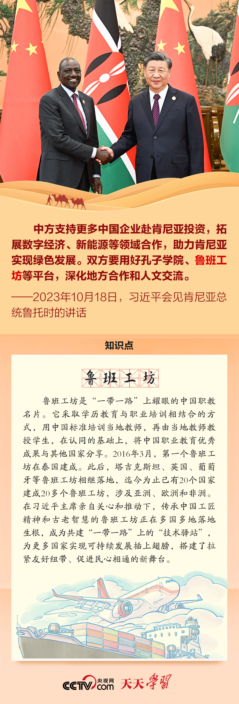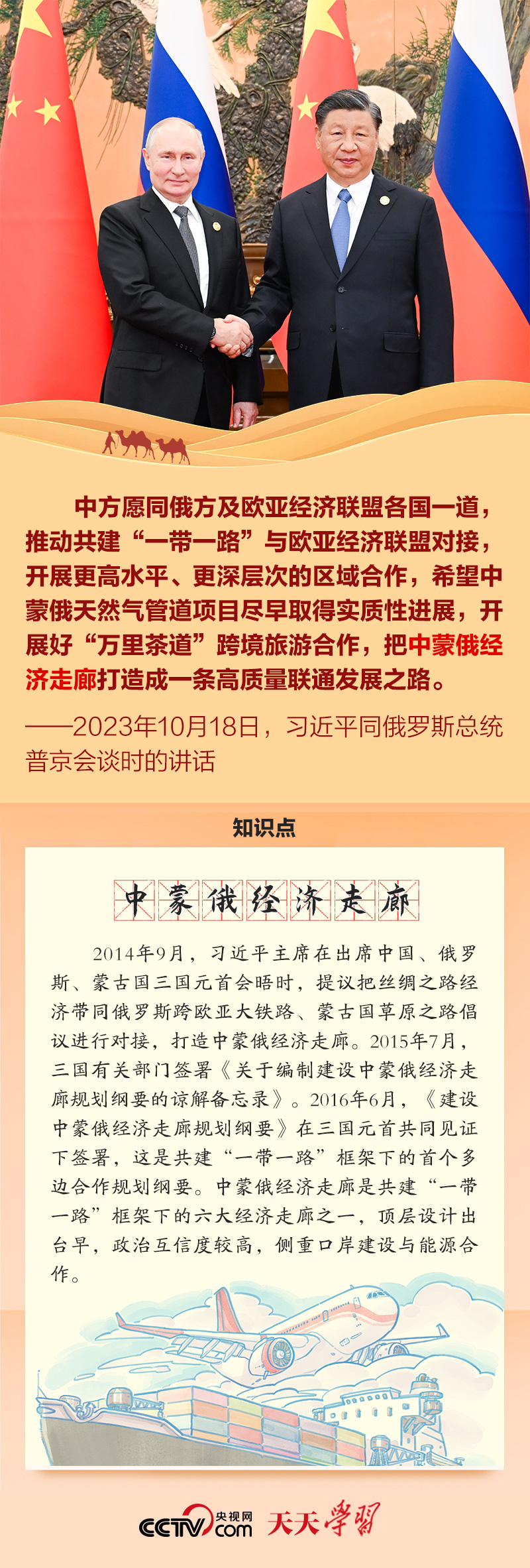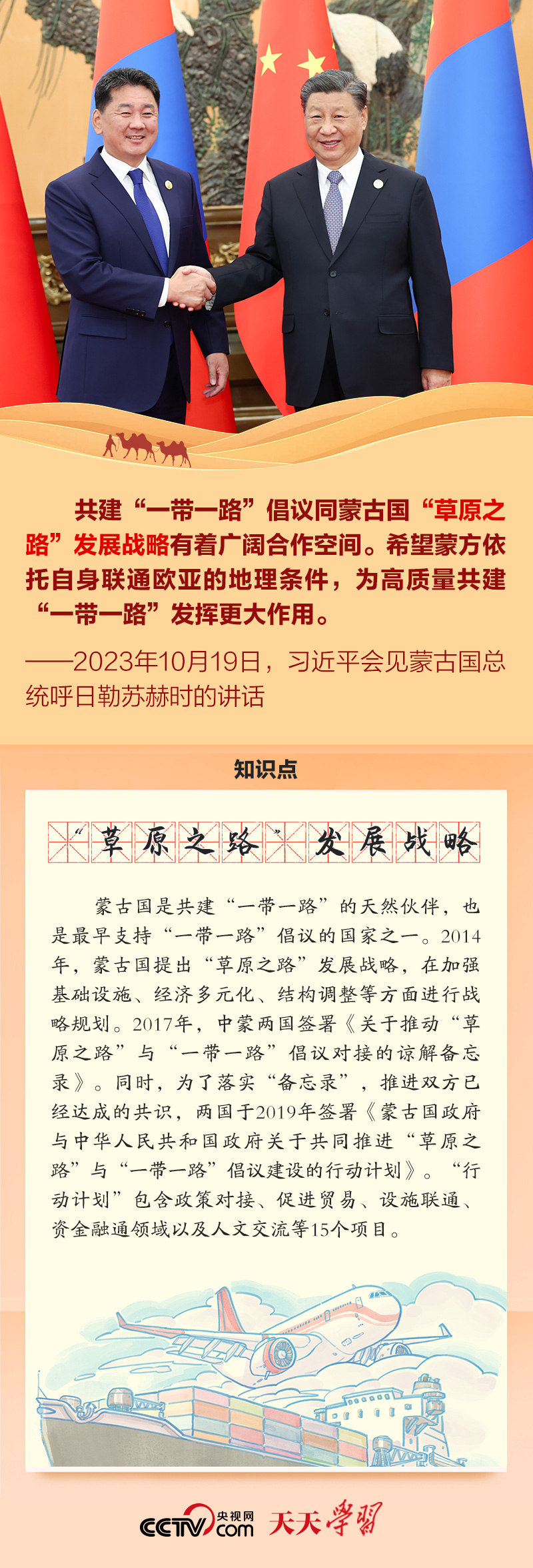 在面对面交流中,习近平主席提到“中蒙俄经济走廊”“真实亲诚对非政策理念”“全球南方国家”“鲁班工坊”“‘复兴丝绸之路’战略”等多个名词。《天天学习》与您一起学习了解。