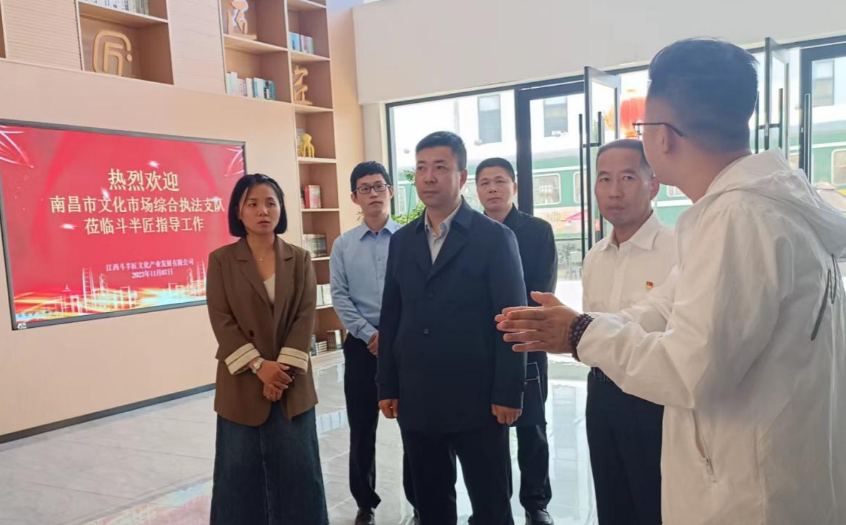 近日,为传承弘扬“四下基层”优良传统,市文化市场综合执法支队支队长刘曦,副支队长邹爱强带领执法人员前往江西斗半匠文化创意产业园开展走访调研活动,帮助企业纾困解难。