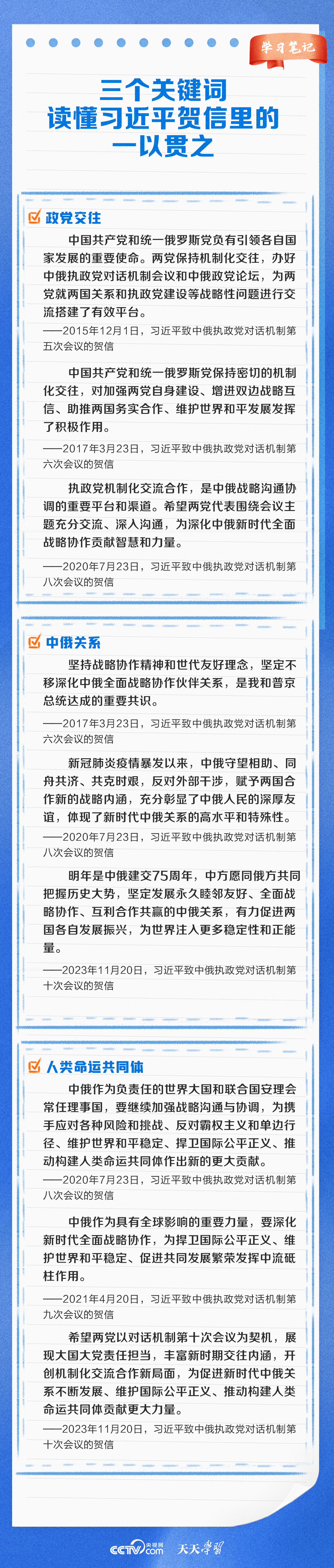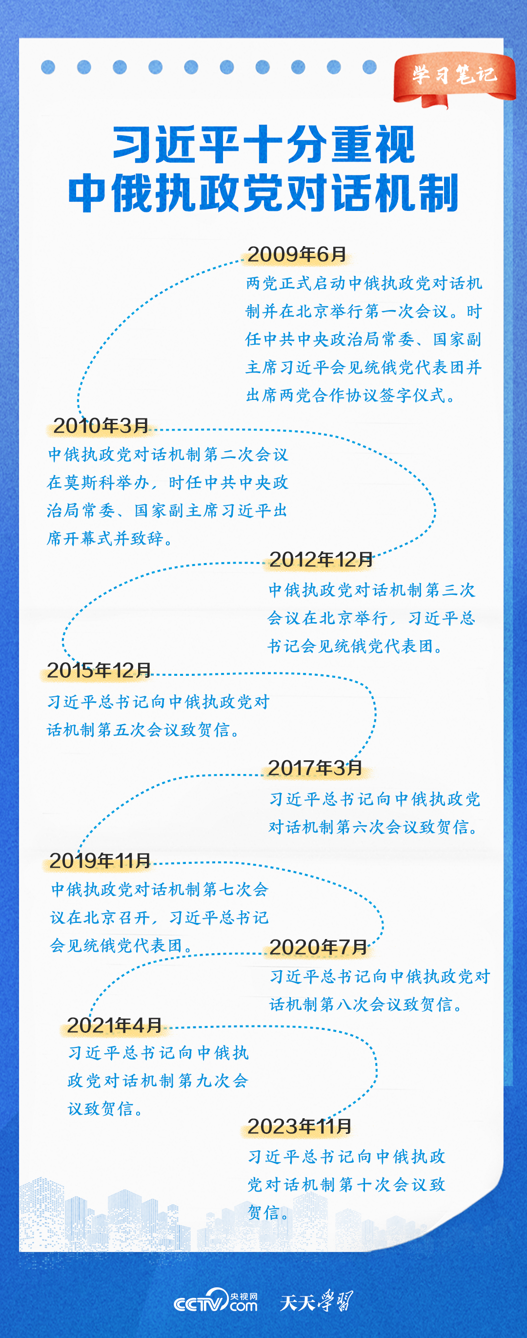 11月20日,中俄执政党对话机制第十次会议以视频方式举办。习近平总书记同普京总统分别向会议致贺信。习近平总书记在贺信中强调,中俄执政党对话机制已发展成为两国巩固政治互信、密切战略协作、推进互利合作的独特渠道和平台。