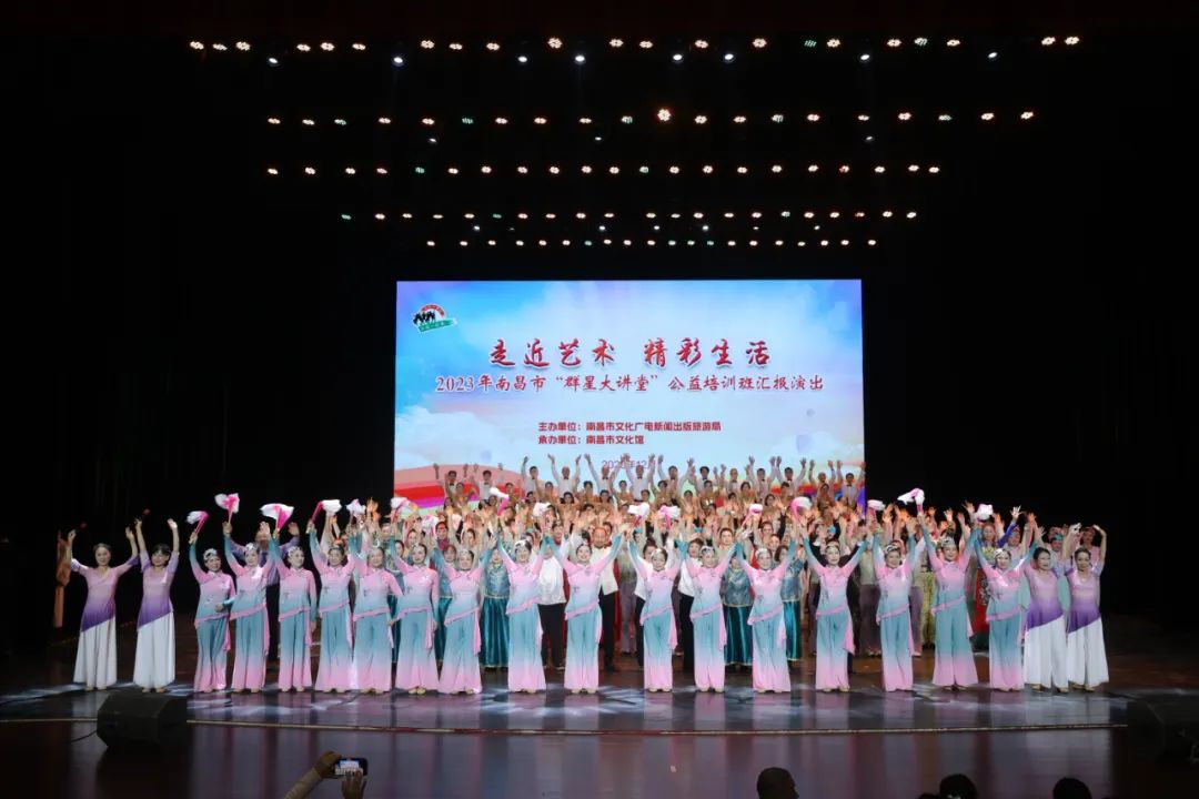 12月1日,由南昌市文化广电新闻出版旅游局主办,南昌市文化馆承办的“走近艺术 精彩生活”2023年南昌市“群星大讲堂”公益培训班汇报演出在南昌市文化馆群星剧场精彩上演。