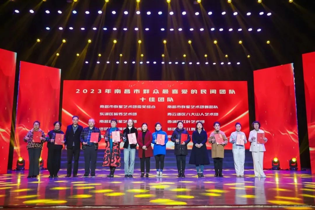 展演活动前,还举行了2023年南昌市“群众最喜爱的民间团队”十佳团队的颁奖仪式,对近年来积极活跃在各项群众文化活动中的南昌市优秀民间团队进行了表彰。 本次演出还通过国家公共文化云等平台进行了线上同步直播,“线上+线下”共吸引了约14万人观看。