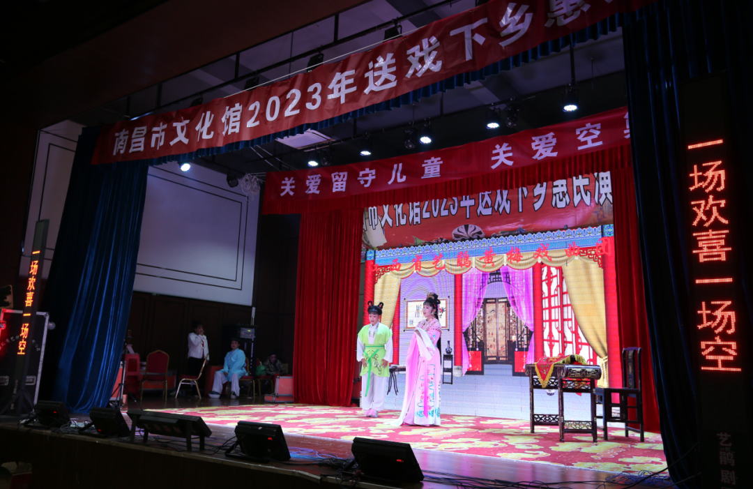 进一步弘扬优秀传统文化,丰富群众精神文化生活,12月9日至10日,南昌市文化馆2023年送戏下乡惠民演出活动在南昌县昌东镇阳门村阳门幸福大礼堂举行。江西省艺鹃黄梅戏曲团演出了《女驸马》《孟姜女》《哑女告状》《红丝错》等深受群众喜爱的剧目,让广大村民在家门口过足“戏瘾”,感受到传统戏曲文化的魅力。