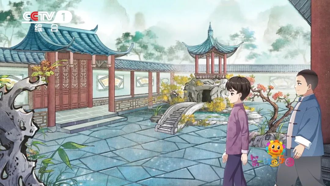 动画片中的场景参考民国时期江南院落,外祖父家厅堂中有留声机、电话等物件,厅堂的门一般为偶数,窗户有雕花,庭院参考苏州园林绘制。在两个孩子聊天的厢房里,有取暖用的炭盆。