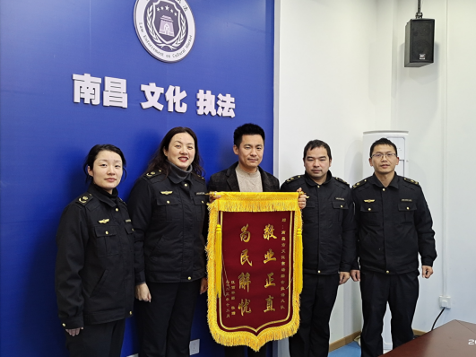锦旗不仅是荣誉,更是一种使命。下一步,支队将继续强化执法,不断完善执法体系,依法、及时、有效化解文旅市场领域的矛盾纠纷,切实保护企业的合法权益,优化营商环境,为南昌经济社会高质量发展提供有力保障。