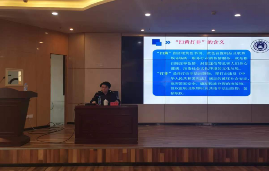 此次到会的文旅经营场所代表共计80余人,涉及文旅行业各个领域。会上,市支队副支队长邹爱强就落实安全生产工作作出相关要求和提示。随后,高新大队负责人张雪梅就“扫黄打非”相关知识开展普法宣讲。