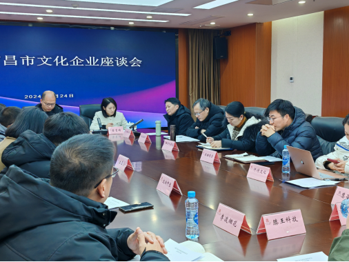 1月24日,市文广新旅局党组成员、副局长曾育婷主持召开2024南昌文化企业座谈会,市委宣传部副部长陈焜出席并讲话。座谈会邀请到全市图书批发、线上广告、报纸、节庆用品生产、广告和文化娱乐休闲服务等文旅领域的龙头企业,文化企业产业协会会员单位等10家企业代表,还有文港毛笔文化产业园、699文化创意园、1962文创园及雅言人文化教育产业园等4家特色文化产业园区代表。