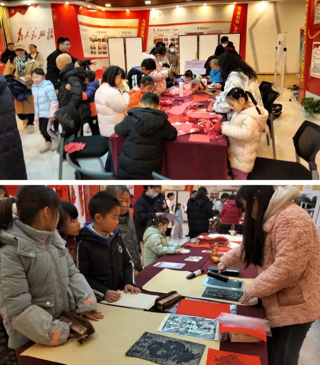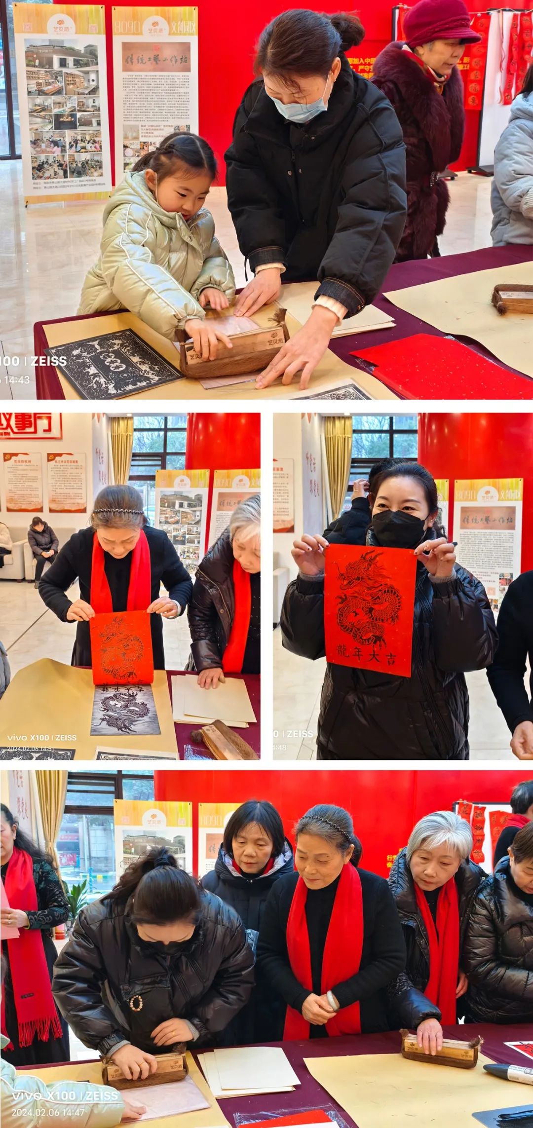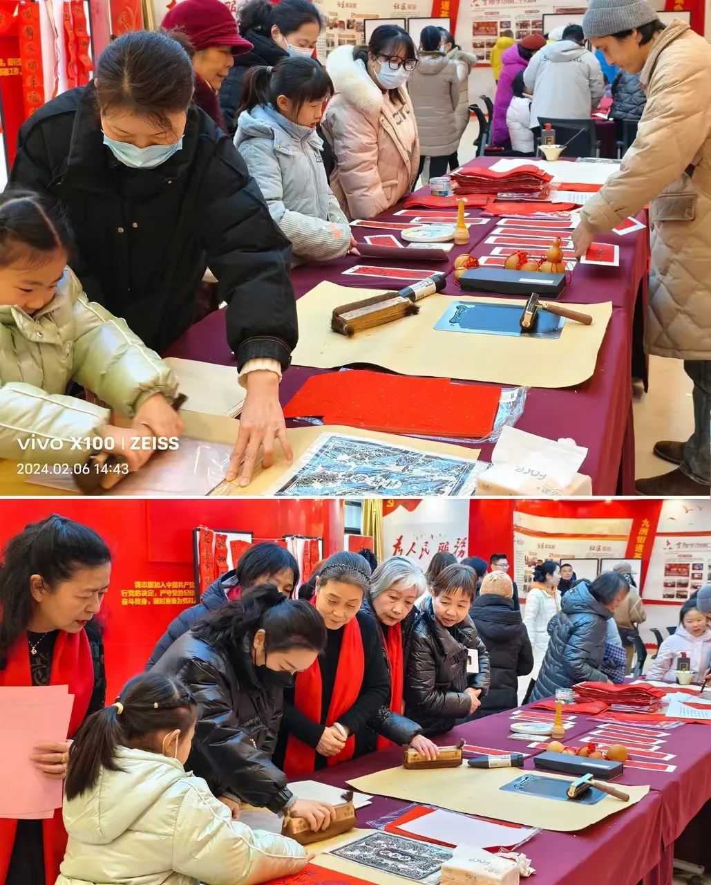 活动现场热闹非凡,暖意融融,文化志愿者们将一幅幅蕴含美好祝愿的春联、“春”字剪纸、“龙年大吉”的拓印送到群众手中。