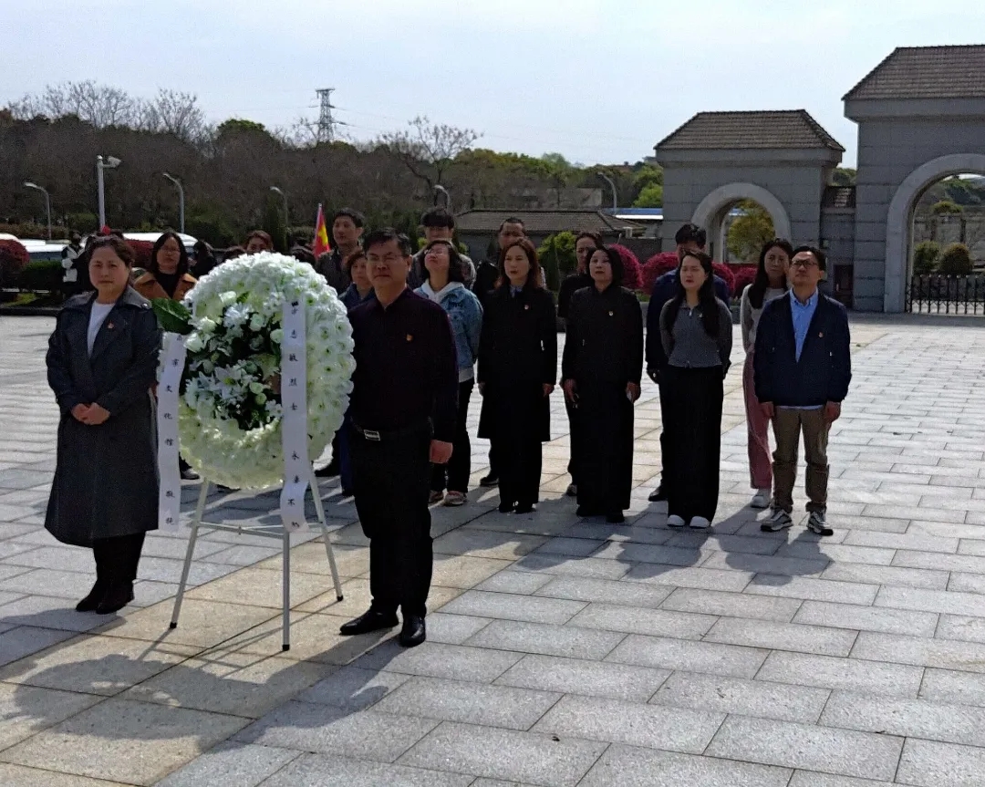 在方志敏烈士铜像前,参加活动的全体党员干部肃穆而立,向烈士敬献花圈,鞠躬致敬,表达对革命先烈的深切哀思和崇高敬意。