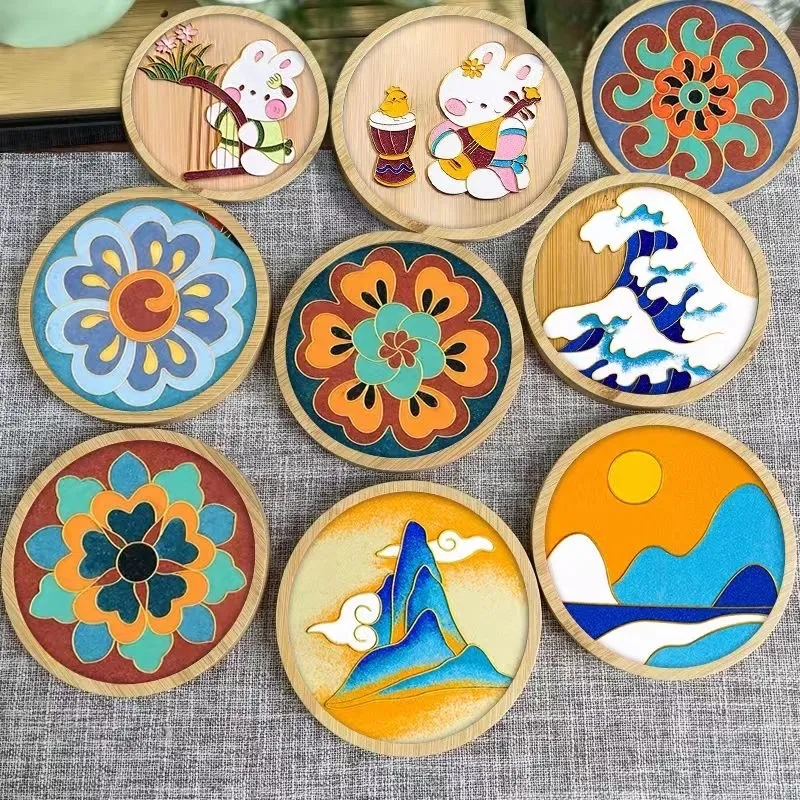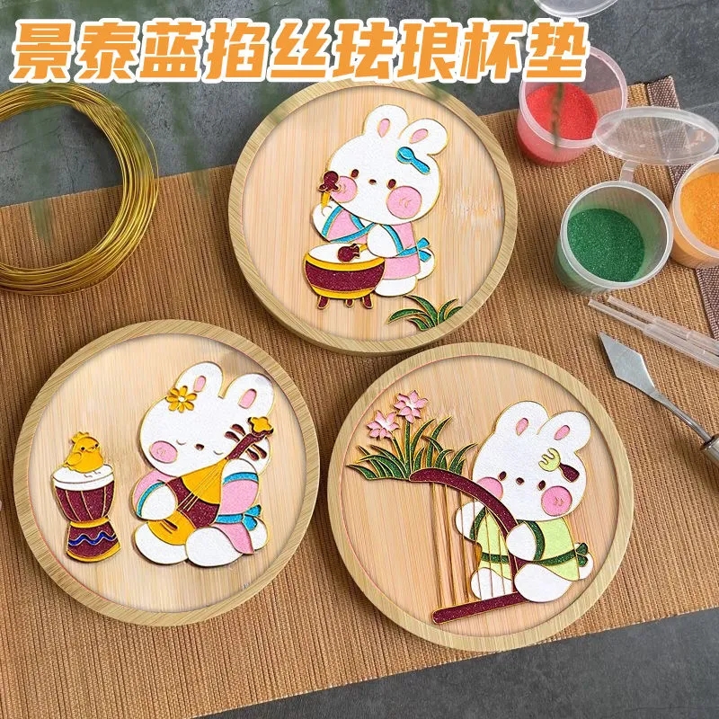3、参与者按照演示和指导,自行制作掐丝珐琅杯垫;