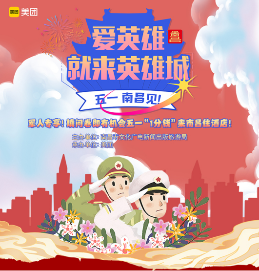 今年五一,南昌把“爱英雄,就来英雄城——五一南昌见”作为活动主题,除了继续举办“弘扬爱国志 奋进新征程”八一广场升国旗活动以外,还针对现役和退役军人推出一系列免费政策。尤其是千间客房军人免费住活动受到了大家的广泛关注。活动参与方式等细则4月27日已通过“南昌文旅 天下英雄城”官方微信公众号发布。