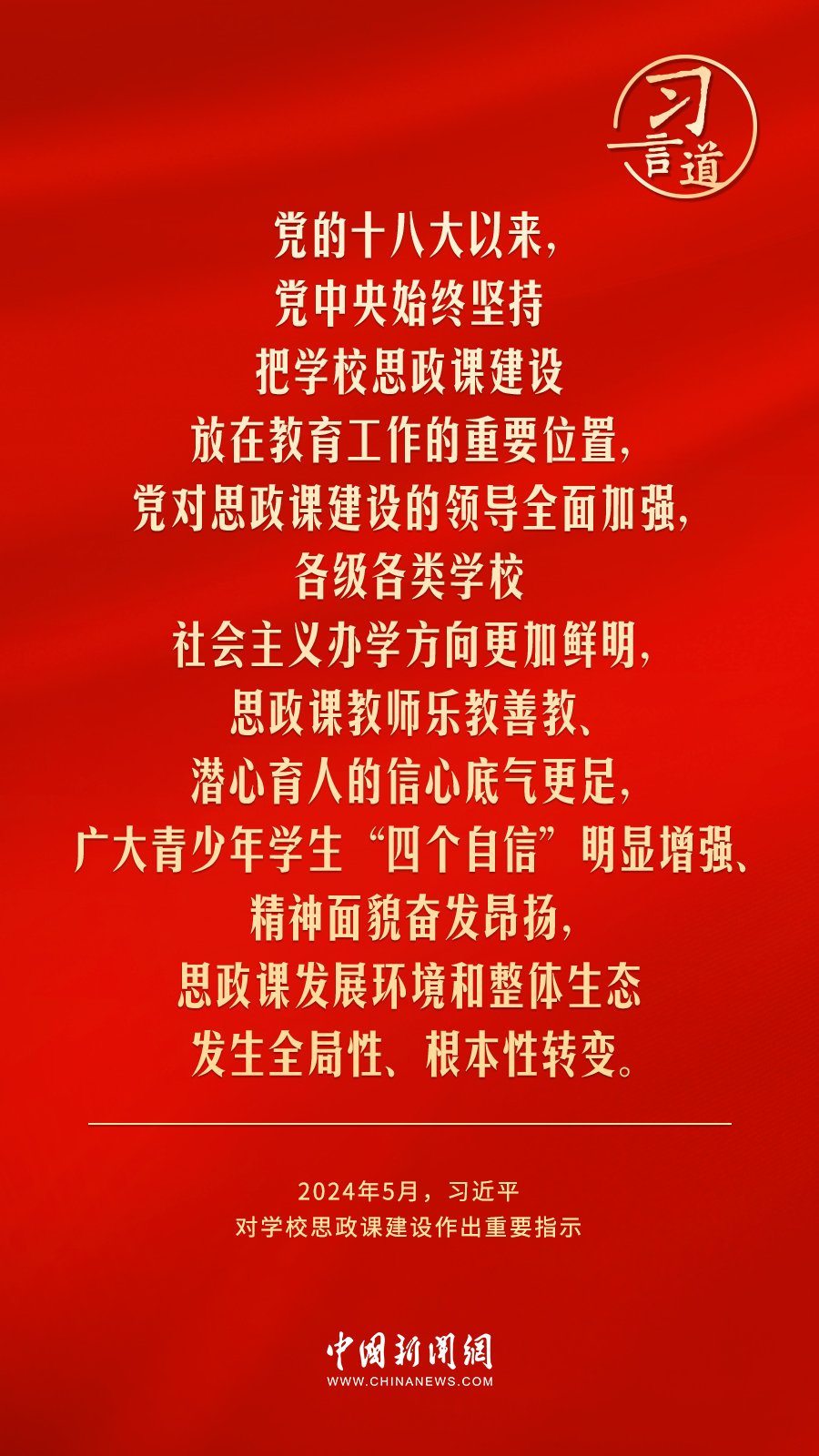 中共中央总书记、国家主席、中央军委主席习近平近日对学校思政课建设作出重要指示,他指出——