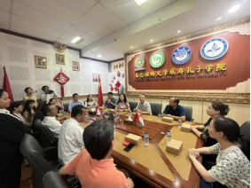 24日演出团前往乌达雅纳大学旅游孔子学院进行交流互动,双方共同歌唱《我和我的祖国》,场面热烈、感动。