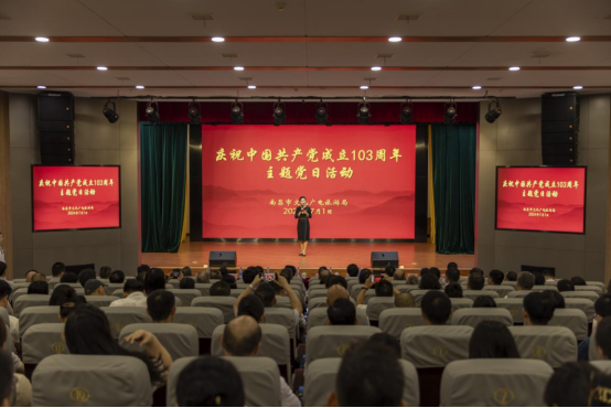 为庆祝中国共产党成立103周年,弘扬伟大建党精神,7月1日,南昌市文化广电旅游局在市小平小道陈列馆开展主题党日活动:重温入党誓词;向老党员颁发“光荣在党50年”纪念章;隆重表彰44名优秀共产党员、11名优秀党务工作者和4个先进基层党组织。