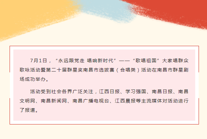 “永远跟党走 唱响新时代”——“歌唱祖国”大家唱群众歌咏活动暨第二十届群星奖南昌市选拔赛(合唱类)精彩回顾